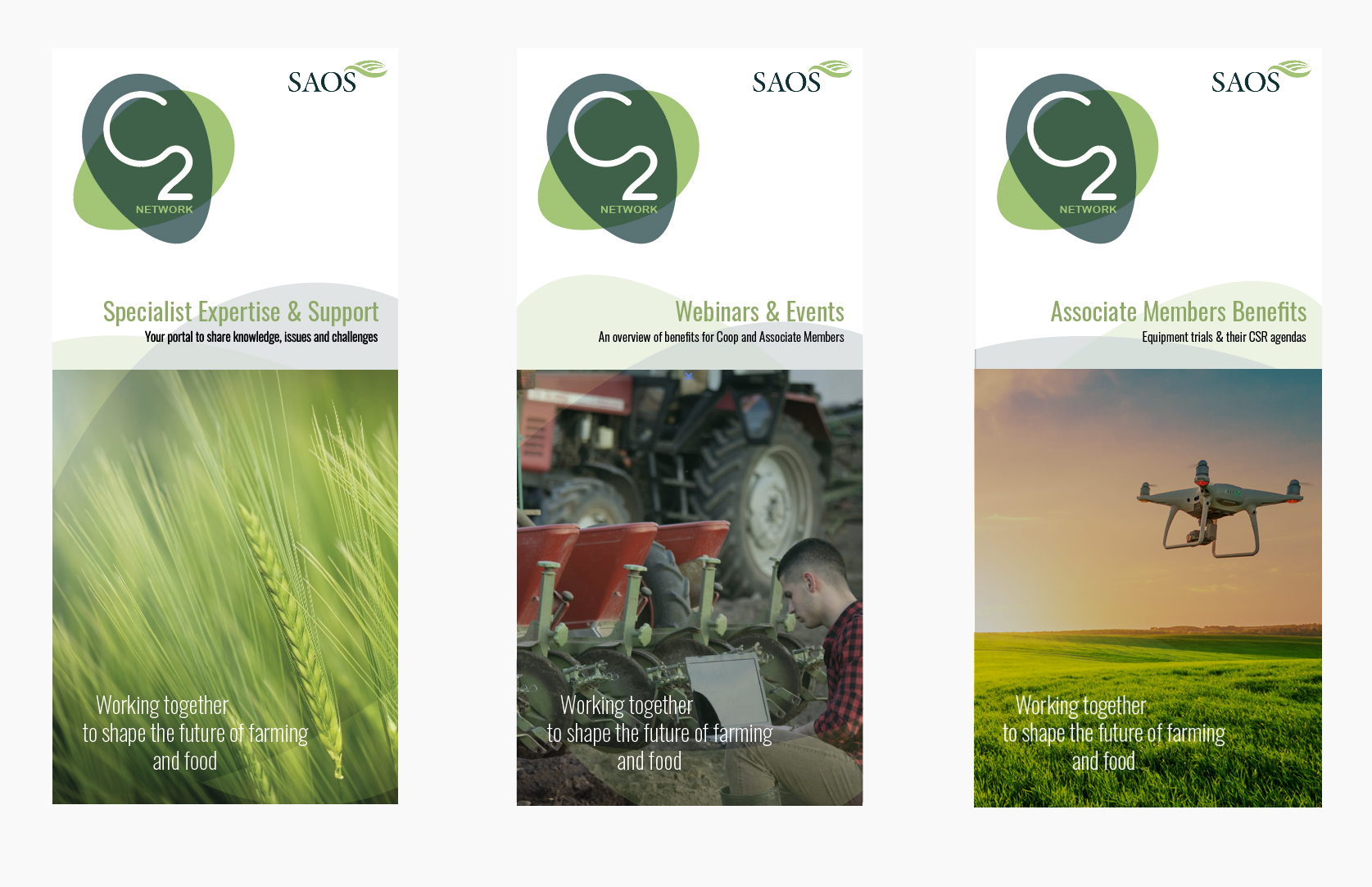The design of the logo illustrates the integration and overlapping of the services offered, taking reference from the SAOS colour palette, with a simple flowing font.